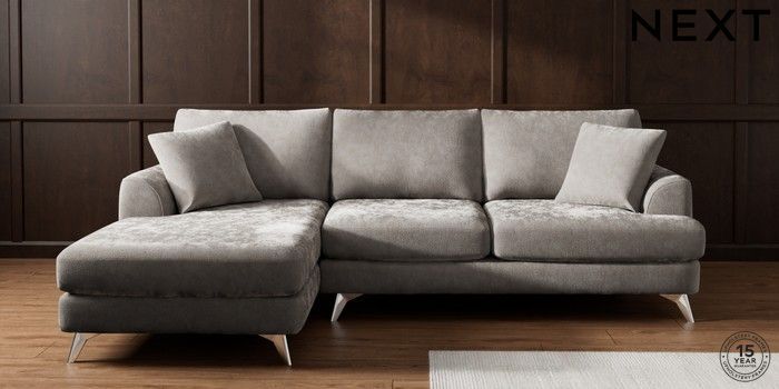 7.3.1 Buy Parker Medium Sofa Chaise - Left Hand Distressed Velour French Grey High Metal - Chrome from the Seasons online shop Click here to use our website with more accessibility support, for example screen readers