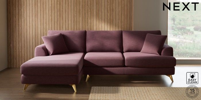 7.3.1 Buy Parker Medium Sofa Chaise - Left Hand Fine Chenille Easy Clean Mid Mulberry Purple High Metal - Brass from the Seasons online shop Click here to use our website with more accessibility support, for example screen readers