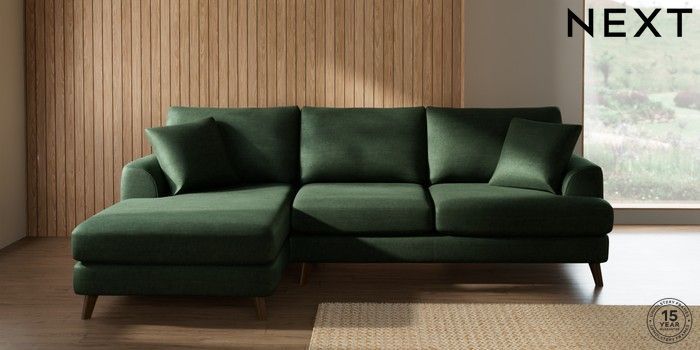 7.3.1 Buy Parker Medium Sofa Chaise - Left Hand Luxe Chenille Dark Green Low Retro Tapered - Mid from the Seasons online shop Click here to use our website with more accessibility support, for example screen readers