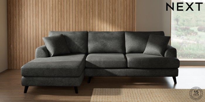 7.2.10 Buy Parker Medium Sofa Chaise - Left Hand Plush Chenille Dark Grey Low Retro Tapered - Dark from the Seasons online shop Click here to use our website with more accessibility support, for example screen readers