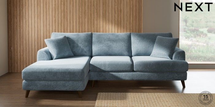 7.2.10 Buy Parker Medium Sofa Chaise - Left Hand Plush Chenille Light Blue Low Retro Tapered - Mid from the Seasons online shop Click here to use our website with more accessibility support, for example screen readers