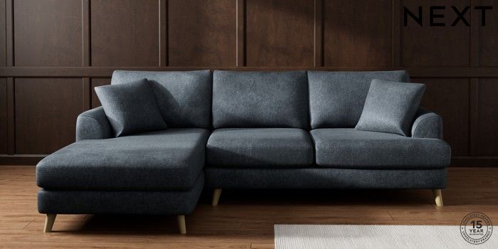 7.2.10 Buy Parker Medium Sofa Chaise - Left Hand Plush Chenille Slate Blue Low Retro Tapered - Light from the Seasons online shop Click here to use our website with more accessibility support, for example screen readers
