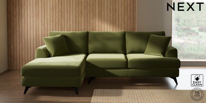 7.3.1 Buy Parker Medium Sofa Chaise - Left Hand Plush Velvet Easy Clean Mid Olive Green High Metal - Black from the Seasons online shop Click here to use our website with more accessibility support, for example screen readers