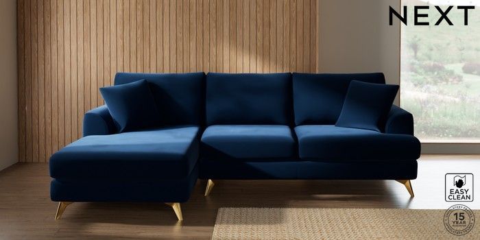 7.3.1 Buy Parker Medium Sofa Chaise - Left Hand Plush Velvet Easy Clean Navy Blue High Metal - Brass from the Seasons online shop Click here to use our website with more accessibility support, for example screen readers