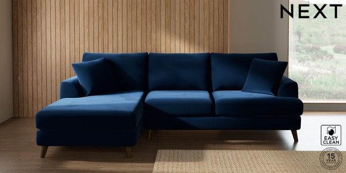 7.3.1 Buy Parker Medium Sofa Chaise - Left Hand Plush Velvet Easy Clean Navy Blue Low Retro Tapered - Mid from the Seasons online shop Click here to use our website with more accessibility support, for example screen readers