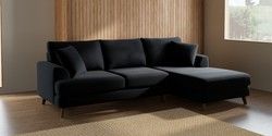 7.3.1 Buy Parker Medium Sofa Chaise - Right Hand Fine Chenille Easy Clean Black Low Retro Tapered - Mid from the Seasons online shop Click here to use our website with more accessibility support, for example screen readers