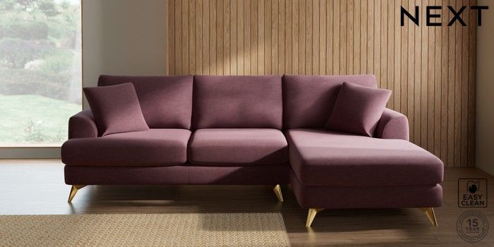 7.3.1 Buy Parker Medium Sofa Chaise - Right Hand Fine Chenille Easy Clean Mid Mulberry Purple High Metal - Brass from the Seasons online shop Click here to use our website with more accessibility support, for example screen readers