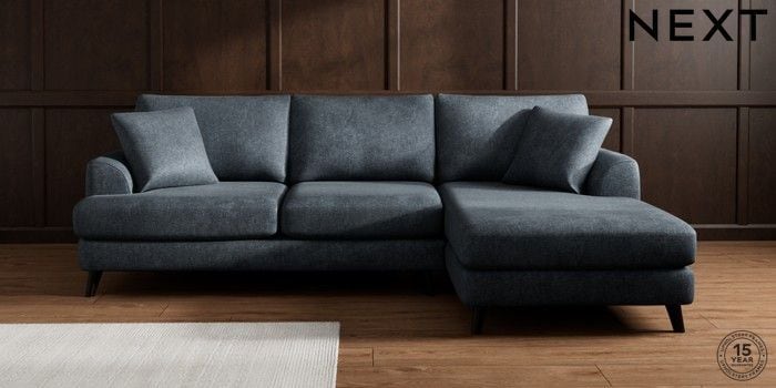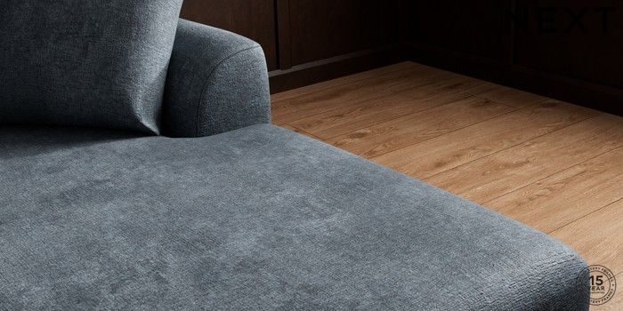 7.3.1 Buy Parker Medium Sofa Chaise - Right Hand Plush Chenille Slate Blue Low Retro Tapered - Dark from the Seasons online shop Click here to use our website with more accessibility support, for example screen readers