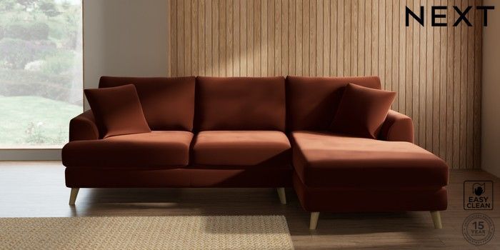 7.3.1 Buy Parker Medium Sofa Chaise - Right Hand Plush Velvet Easy Clean Ginger Orange Low Retro Tapered - Light from the Seasons online shop Click here to use our website with more accessibility support, for example screen readers