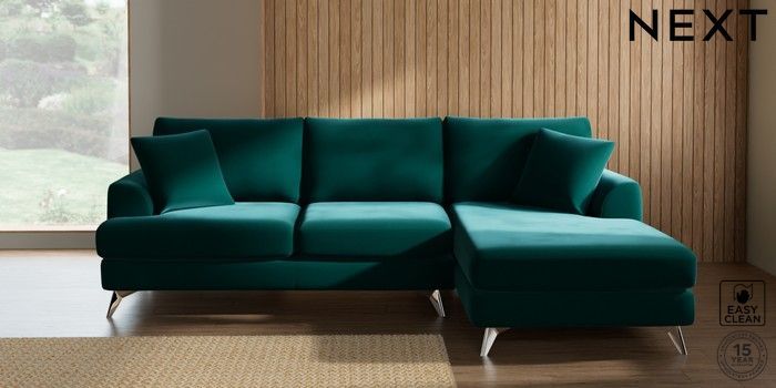 7.3.1 Buy Parker Medium Sofa Chaise - Right Hand Plush Velvet Easy Clean Juniper Green High Metal - Chrome from the Seasons online shop Click here to use our website with more accessibility support, for example screen readers