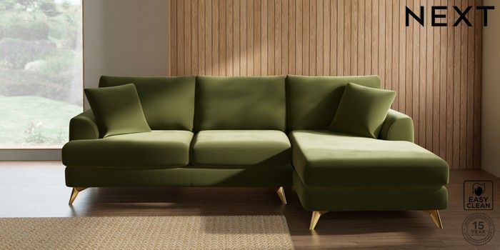 7.3.1 Buy Parker Medium Sofa Chaise - Right Hand Plush Velvet Easy Clean Mid Olive Green High Metal - Brass from the Seasons online shop Click here to use our website with more accessibility support, for example screen readers