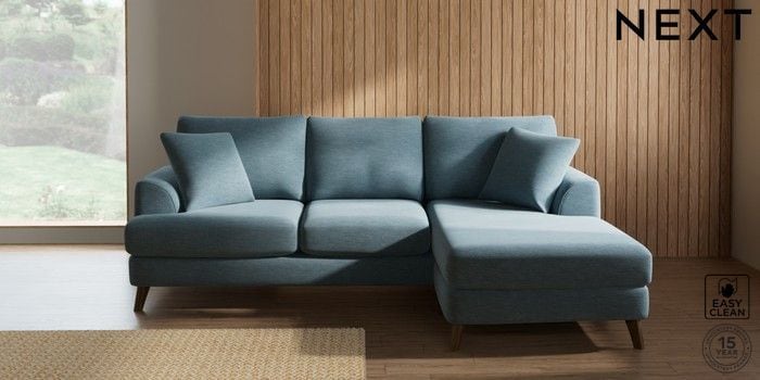 7.3.1 Buy Parker Small Sofa Chaise - Universal Fine Chenille Easy Clean Mid Blue Low Retro Tapered - Mid from the Seasons online shop Click here to use our website with more accessibility support, for example screen readers