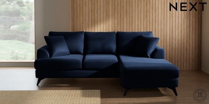 7.3.1 Buy Parker Small Sofa Chaise - Universal Luxe Chenille Navy Blue High Metal - Black from the Seasons online shop Click here to use our website with more accessibility support, for example screen readers