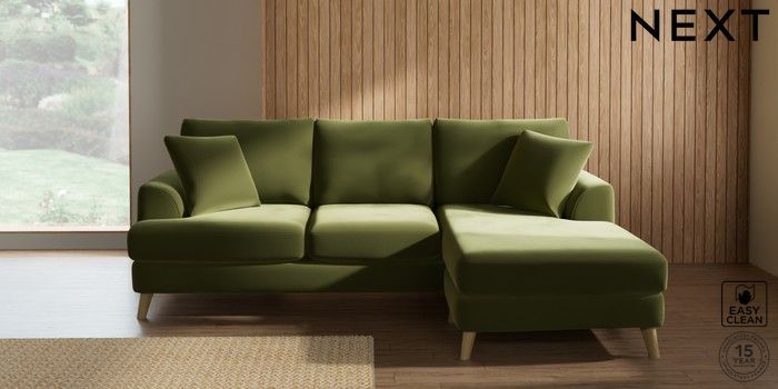 7.3.1 Buy Parker Small Sofa Chaise - Universal Plush Velvet Easy Clean Mid Olive Green Low Retro Tapered - Light from the Seasons online shop Click here to use our website with more accessibility support, for example screen readers