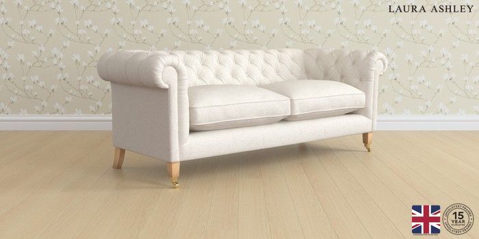 7.3.1 Buy Penarth by Laura Ashley 3 Seater Sofa Anneliese Oyster Natural Straight Brass Castor - Light Oak from the Seasons online shop