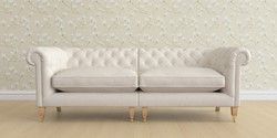 The Laura Ashley Penarth is a signature deep sit curved sofa in the Chesterfield style. Featuring gently scrolled, wide arms, matching the height of the back of the sofa, combined with deep seat cushions filled with foam core and fibre wrap interiors, this sofa is perfect for relaxing in. Elegant, tapered show wood legs with brass or chrome castors complete the traditional, classic style.
