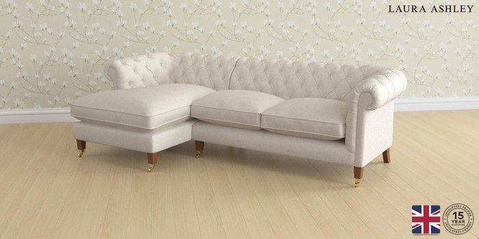 7.3.1 Buy Penarth by Laura Ashley Medium Sofa Chaise - Left Hand Anneliese Oyster Natural Straight Brass Castor - Teak from the Seasons online shop Click here to use our website with more accessibility support, for example screen readers
