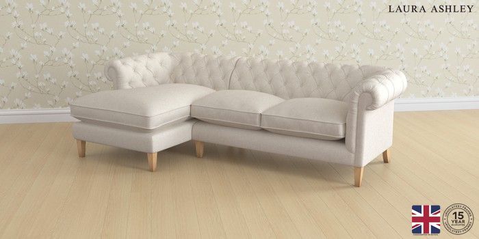 7.3.1 Buy Penarth by Laura Ashley Medium Sofa Chaise - Left Hand Anneliese Oyster Natural Straight Mid - Light Oak from the Seasons online shop Click here to use our website with more accessibility support, for example screen readers