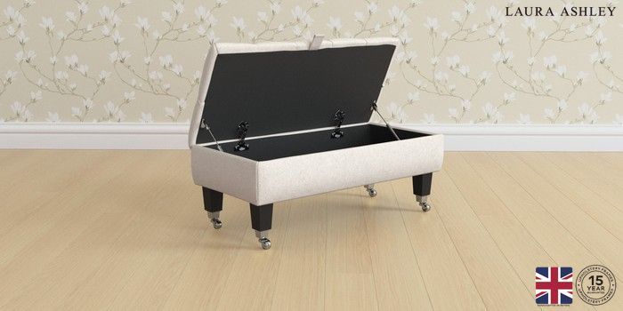 7.3.1 Buy Penarth by Laura Ashley Storage Footstool Anneliese Oyster Natural Straight Chrome Castor - Black from the Seasons online shop Click here to use our website with more accessibility support, for example screen readers