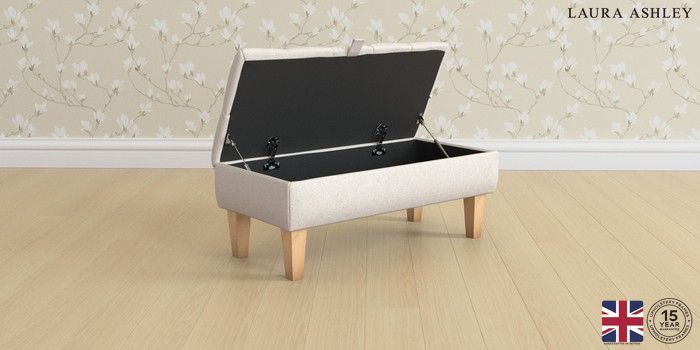 7.3.1 Buy Penarth by Laura Ashley Storage Footstool Anneliese Oyster Natural Straight Mid - Light Oak from the Seasons online shop Click here to use our website with more accessibility support, for example screen readers