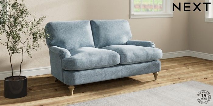 7.2.10 Buy Sadie Deep Relaxed Sit 2 Seater Small Sofa Plush Chenille Light Blue High Slim Turned - Light from the Seasons online shop Click here to use our website with more accessibility support, for example screen readers