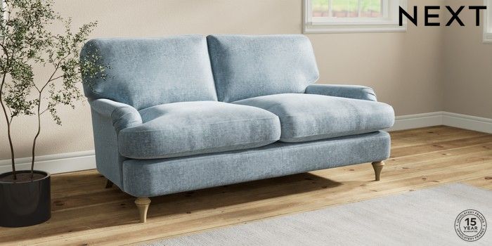 7.2.10 Buy Sadie Deep Relaxed Sit 2 Seater Sofa Plush Chenille Light Blue High Slim Turned - Light from the Seasons online shop Click here to use our website with more accessibility support, for example screen readers