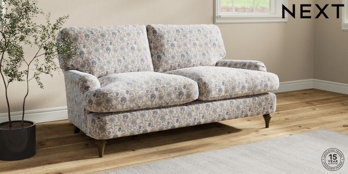 7.3.1 Buy Sadie Deep Relaxed Sit 2 Seater Sofa Relaxed Linen Look Print Woodblock Floral Blue High Slim Turned - Mid from the Seasons online shop