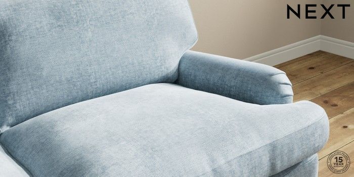 7.3.1 Buy Sadie Deep Relaxed Sit 3 Seater Sofa Plush Chenille Light Blue High Slim Turned - Dark Brown from the Seasons online shop Click here to use our website with more accessibility support, for example screen readers