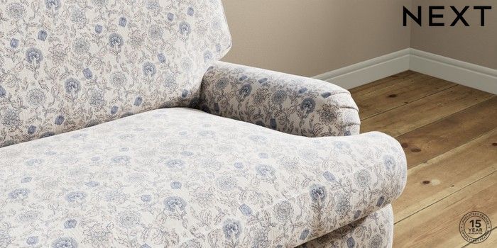 7.3.1 Buy Sadie Deep Relaxed Sit 4 Seater Sofa Relaxed Linen Look Print Woodblock Floral Blue High Slim Turned - Mid from the Seasons online shop