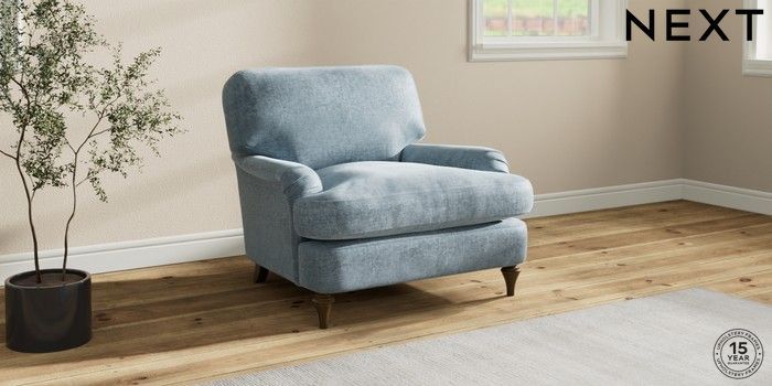 7.2.10 Buy Sadie Deep Relaxed Sit Armchair Plush Chenille Light Blue High Slim Turned - Mid from the Seasons online shop Click here to use our website with more accessibility support, for example screen readers