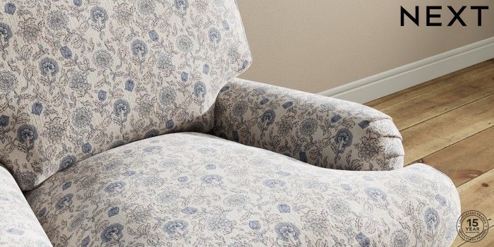 7.3.1 Buy Sadie Deep Relaxed Sit Armchair Relaxed Linen Look Print Woodblock Floral Blue High Slim Turned - Light from the Seasons online shop