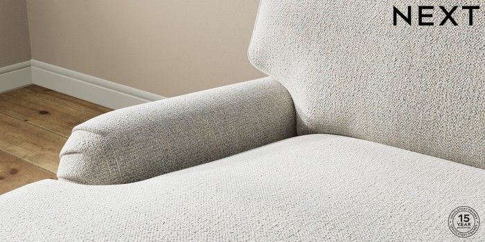 A chunky, hardwearing fabric with a timeless look which can tackle most household stains by blotting or gently wiping the fabric with water and a mild detergent. This Fabric is covered by the Quality Fabric Kitemark