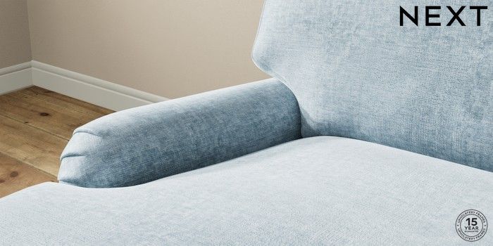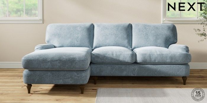 7.2.10 Buy Sadie Deep Relaxed Sit Medium Sofa Chaise - Left Hand Plush Chenille Light Blue High Slim Turned - Mid from the Seasons online shop Click here to use our website with more accessibility support, for example screen readers