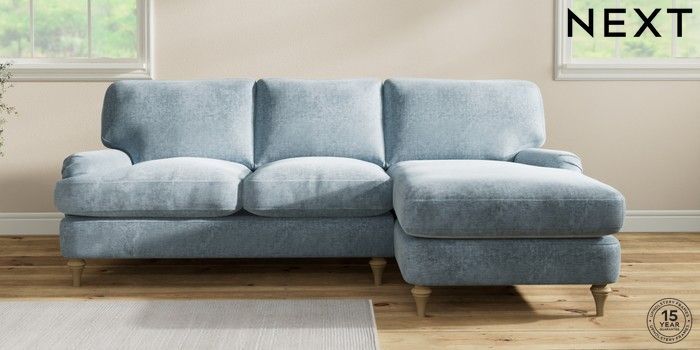 7.2.10 Buy Sadie Deep Relaxed Sit Medium Sofa Chaise - Right Hand Plush Chenille Light Blue High Slim Turned - Light from the Seasons online shop Click here to use our website with more accessibility support, for example screen readers