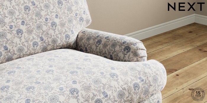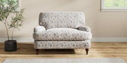 7.3.1 Buy Sadie Deep Relaxed Sit Snuggle Relaxed Linen Look Print Woodblock Floral Blue High Slim Turned - Dark Brown from the Seasons online shop