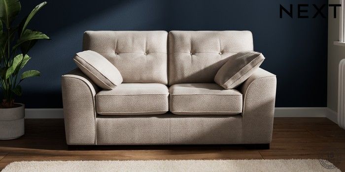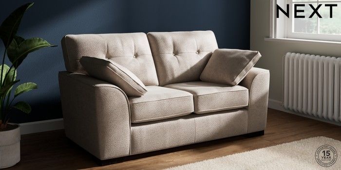 7.2.10 Buy Stamford Buttoned Back 2 Seater Small Sofa Boucle Chenille Light Natural Large Square Angle - Dark from the Seasons online shop Click here to use our website with more accessibility support, for example screen readers