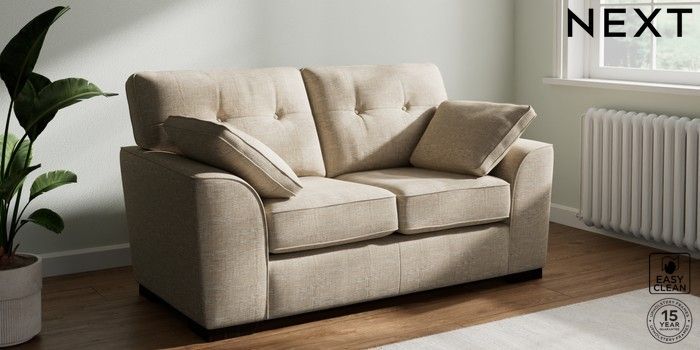 7.2.10 Buy Stamford Buttoned Back 2 Seater Small Sofa Boucle Weave Easy Clean Dark Natural Large Square Angle - Dark from the Seasons online shop Click here to use our website with more accessibility support, for example screen readers
