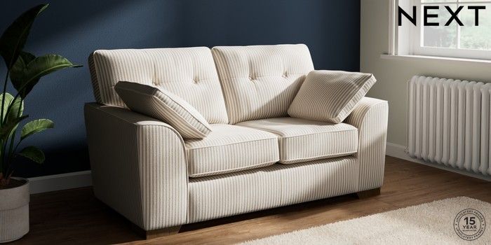 7.3.1 Buy Stamford Buttoned Back 2 Seater Small Sofa Chenille Stripe Natural Large Square Angle - Mid from the Seasons online shop Click here to use our website with more accessibility support, for example screen readers