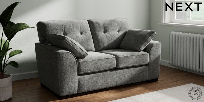 7.2.10 Buy Stamford Buttoned Back 2 Seater Small Sofa Chunky Chenille Dark Grey Large Square Angle - Dark from the Seasons online shop Click here to use our website with more accessibility support, for example screen readers