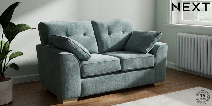 7.2.10 Buy Stamford Buttoned Back 2 Seater Small Sofa Chunky Chenille Light Teal Green Large Square Angle - Light from the Seasons online shop Click here to use our website with more accessibility support, for example screen readers