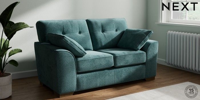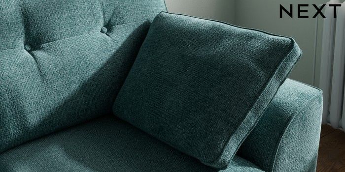 7.2.10 Buy Stamford Buttoned Back 2 Seater Small Sofa Chunky Chenille Mid Teal Green Large Square Angle - Mid from the Seasons online shop Click here to use our website with more accessibility support, for example screen readers