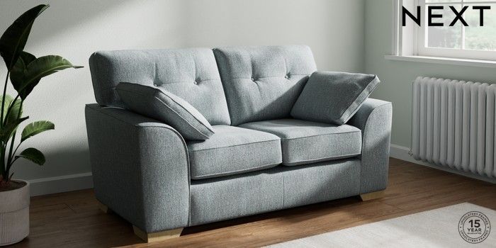 7.2.10 Buy Stamford Buttoned Back 2 Seater Small Sofa Chunky Weave Mid Blue Large Square Angle - Light from the Seasons online shop Click here to use our website with more accessibility support, for example screen readers
