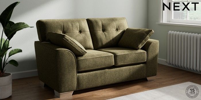 7.3.1 Buy Stamford Buttoned Back 2 Seater Small Sofa Cotswold Chenille Dark Green Large Square Angle - Chrome Metal from the Seasons online shop Click here to use our website with more accessibility support, for example screen readers