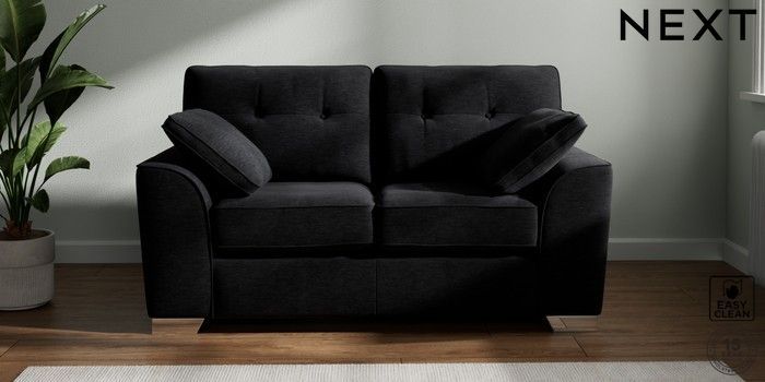 7.2.10 Buy Stamford Buttoned Back 2 Seater Small Sofa Fine Chenille Easy Clean Black Large Square Angle - Chrome Metal from the Seasons online shop Click here to use our website with more accessibility support, for example screen readers