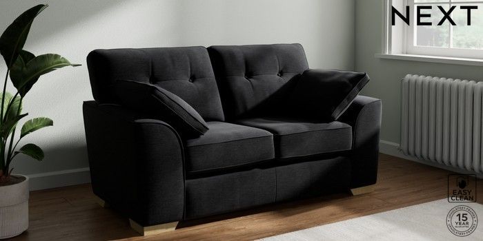 7.2.10 Buy Stamford Buttoned Back 2 Seater Small Sofa Fine Chenille Easy Clean Black Large Square Angle - Light from the Seasons online shop Click here to use our website with more accessibility support, for example screen readers