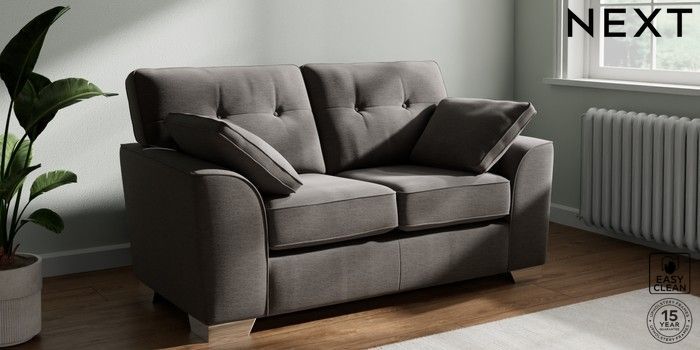 7.3.1 Buy Stamford Buttoned Back 2 Seater Small Sofa Fine Chenille Easy Clean Dark Smoke Grey Large Square Angle - Chrome Metal from the Seasons online shop Click here to use our website with more accessibility support, for example screen readers