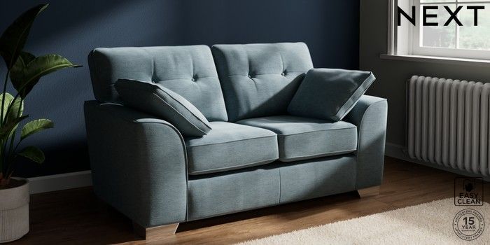 7.2.10 Buy Stamford Buttoned Back 2 Seater Small Sofa Fine Chenille Easy Clean Mid Blue Large Square Angle - Chrome Metal from the Seasons online shop Click here to use our website with more accessibility support, for example screen readers