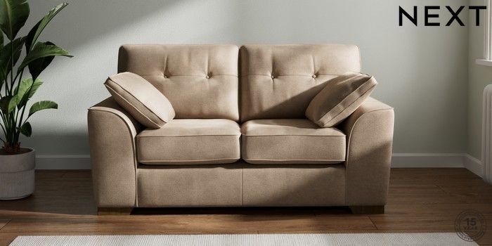 7.2.10 Buy Stamford Buttoned Back 2 Seater Small Sofa Luxe Chenille Mid Camel Beige Large Square Angle - Mid from the Seasons online shop Click here to use our website with more accessibility support, for example screen readers