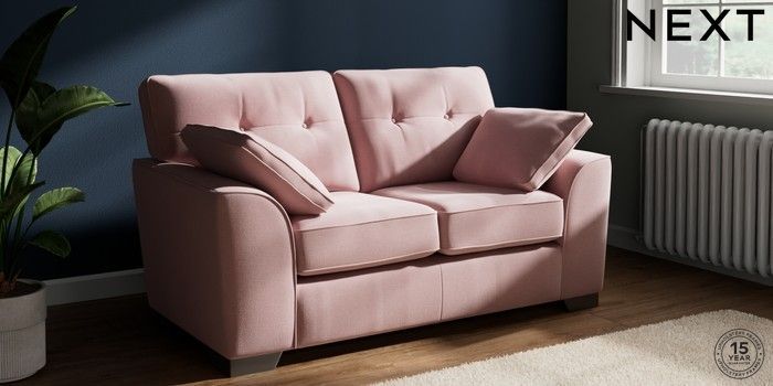 7.3.1 Buy Stamford Buttoned Back 2 Seater Small Sofa Natural Mix Light Rose Pink Large Square Angle - Gunmetal from the Seasons online shop Click here to use our website with more accessibility support, for example screen readers