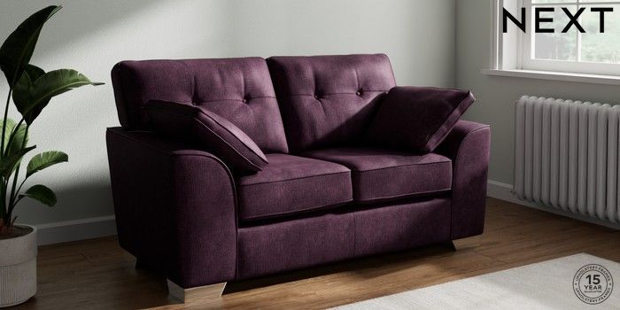 7.3.1 Buy Stamford Buttoned Back 2 Seater Small Sofa Plush Chenille Dark Plum Purple Large Square Angle - Chrome Metal from the Seasons online shop Click here to use our website with more accessibility support, for example screen readers
